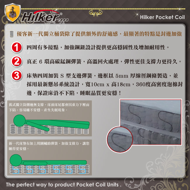 ✅三段式護背6.5環獨立筒彈簧,針對各部位重量設計,改善傳統床墊過軟或過硬的缺點